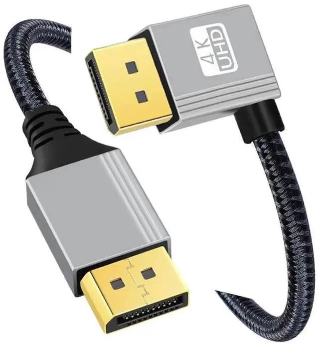 Angled DisplayPort DP to DP Cable 4K 60hz Cable Silver Sleeve Ultra-HD UHD 90 Degree for Desktop Laptop Monitor Graphics Card
