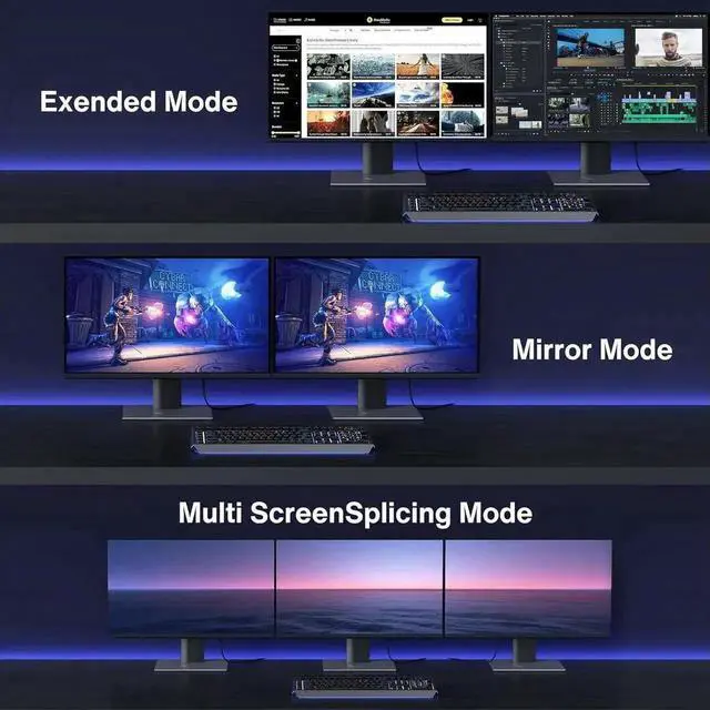 [2K 240Hz DisplayPort 2.1 Cable] DisplayPort 2.1 cable support 8K@60Hz with DSC, 4K@144Hz/120Hz, 2K@240Hz, 1080P@360Hz. Single-screen video output of 8K@60Hz (DSC) and dual-screen 4K@60Hz, three-screen display for 2K@60Hz.