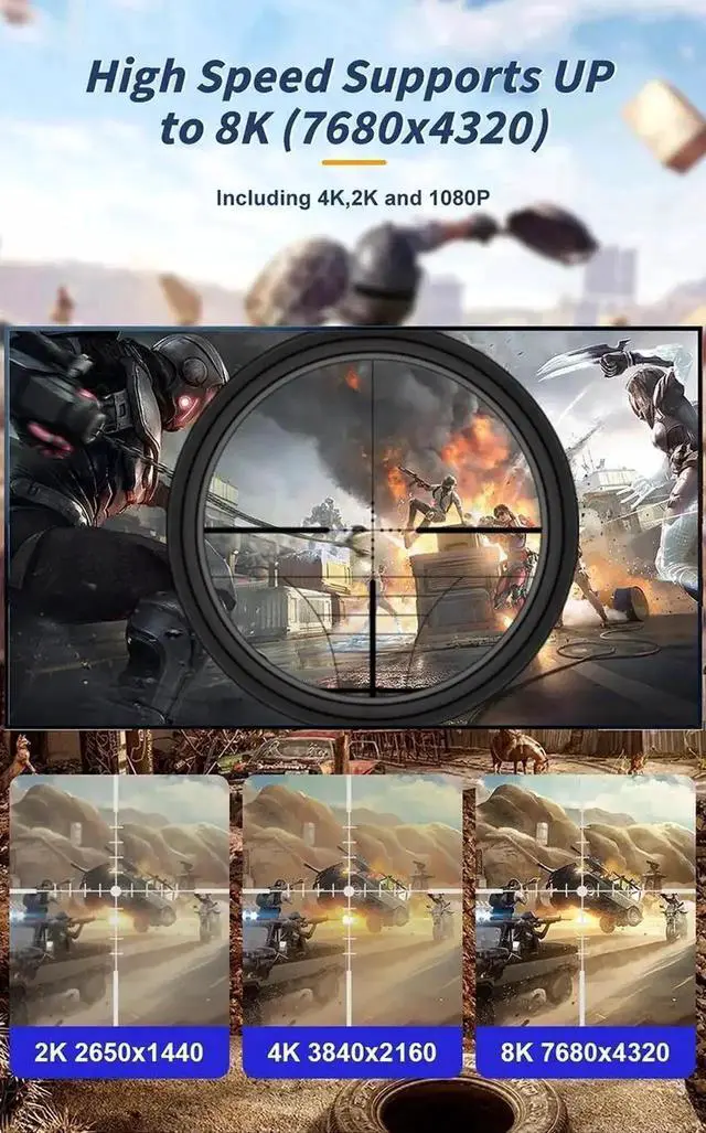 [2K 240Hz fever level game experience] The high-end DisplayPort 2.1 cable supports FreeSync and G Sync technologies to enjoy smooth, tear-free gaming, allows you clearly perceive the movement of enemy.