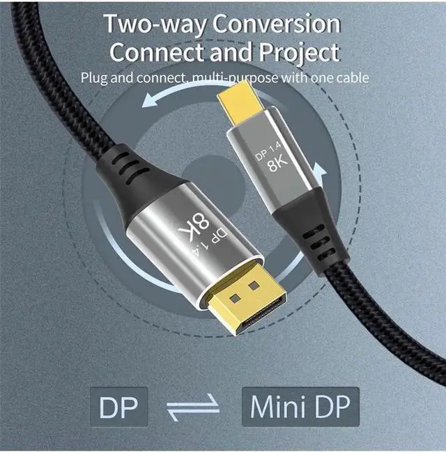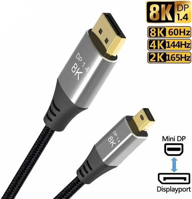 Mini DisplayPort 1.4 8K 60hz Copper Cable Ultra-HD UHD 4K 144hz Mini DP to DP Cable 7680*4320