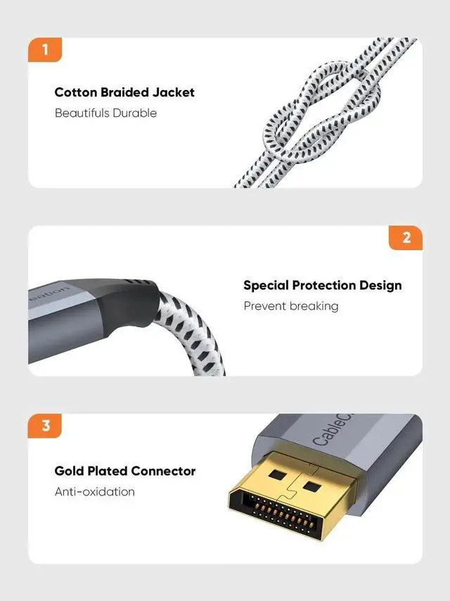 Extreme DurabilityTangle-free cotton braided design, premium aluminum alloy shell and gold-plated connector add additional durability and stability to this cable, which makes it more durable than normal display port cables