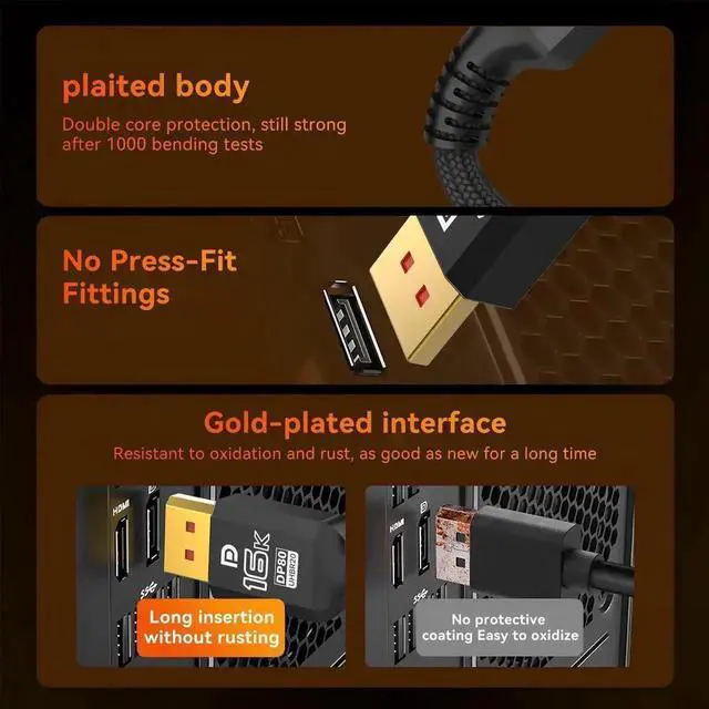 ![Alt view image 4 of 6 - Vszerda DisplayPort Cable 2.1, DP Cord [16K@60Hz,8K@120Hz,4K@240Hz], 80Gbps Display Port 2.1/2.0 Cable DP80 HDR DSC Display Port Cord Compatible FreeSync Gaming Monitor TV, 5090 7900XTX 6.6 ft.](https://c1.neweggimages.com/productimage/nb640/B4D1D2603270RZK7DDB.jpg)