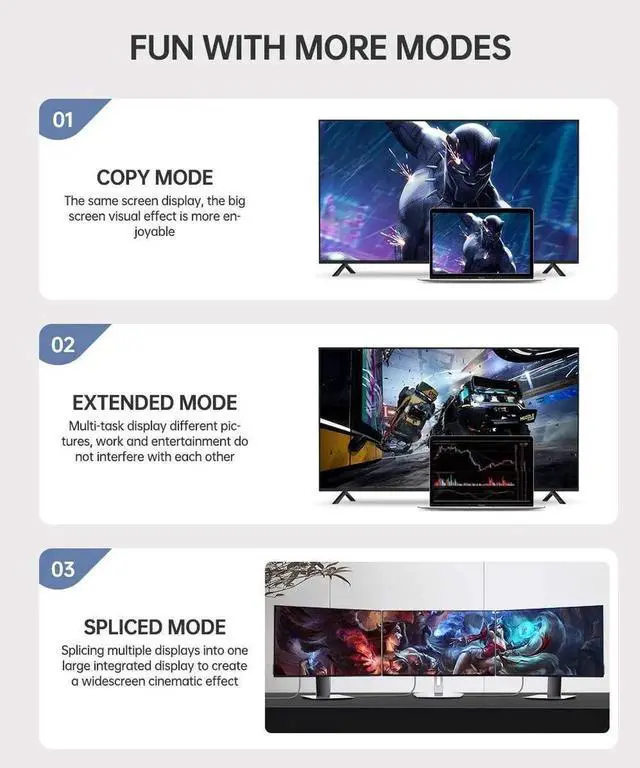 • Refresh Rate: 8K@60Hz, 5K@60Hz, 4K@144Hz, 4K@60Hz, 2K@240Hz, 2K@165Hz