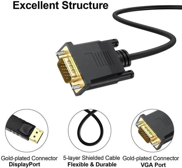 [Excellent Transfer]DisplayPort to VGA 6 Feet Cable utilizes better chip solution and professional multiple shielding for instaneous and accurate data streaming.