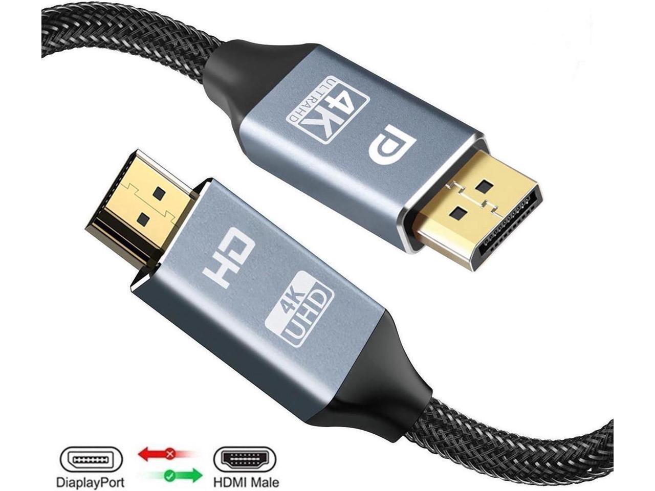 DisplayPort to HDMI Cable 10ft/3M, 4K DP to HDMI Cable [Gold-Plated Plug, Aluminium Shell] Nylon Braided Uni-Direction Display Port to HDMI Lead 10 ft.