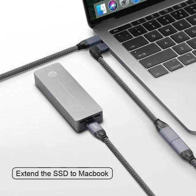 90 Degree Right Angled USB-C USB 3.1 Type C Male to Female Extension Data Cable for Macbook Tablet With sleeve, Length: 20cm Reversible plug orientation Cable direction Support Scalable power charging for Macbook Tablet Mobile Phone Hard Disk Drive