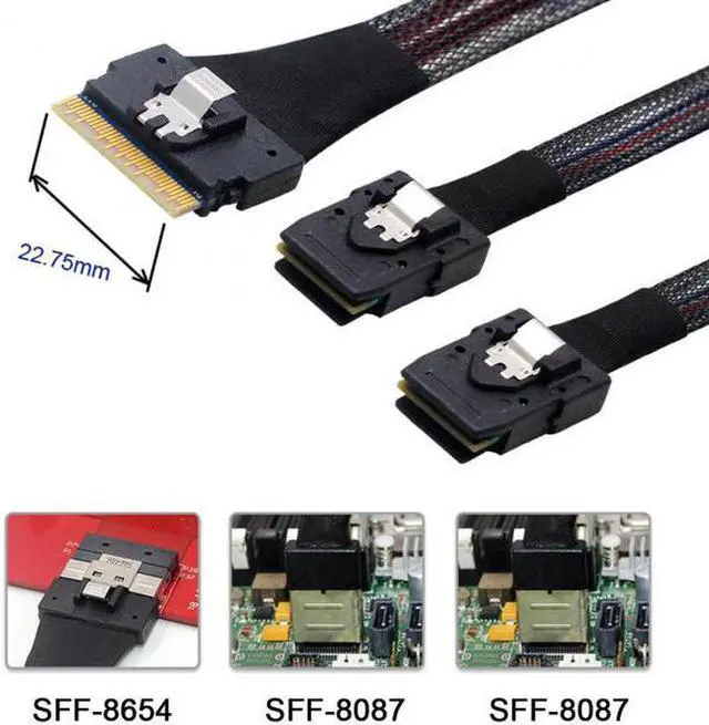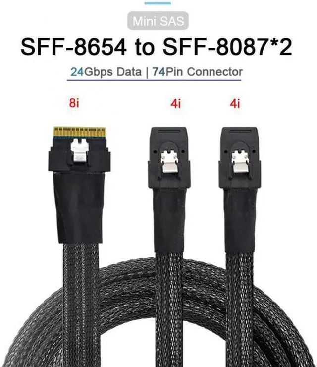 This cable can be used to connect internal devices, e. g. a backplane with Slim Line 8654 74pin connector to a controller with SFF-8087 connector.