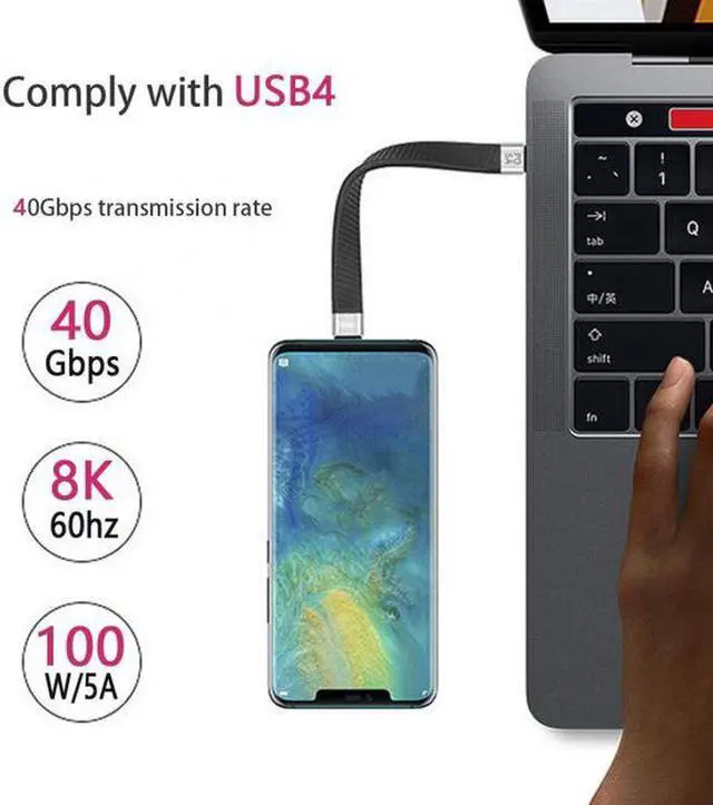 Type-C USB-C Male to Male USB4 40Gbps 100W 8K Flat Slim FPC Data Cable for Laptop Phone 13cm