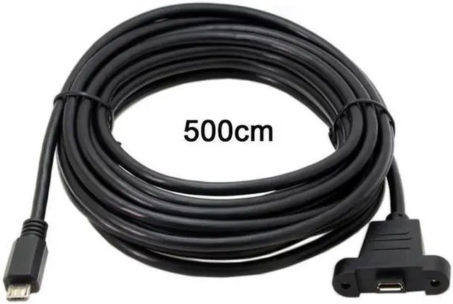 Aomoproing 5m Micro USB 5Pin Male to Female Extension Panel Mount Type Cable with Screws