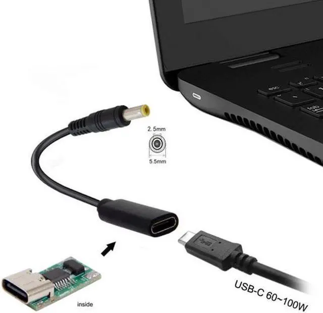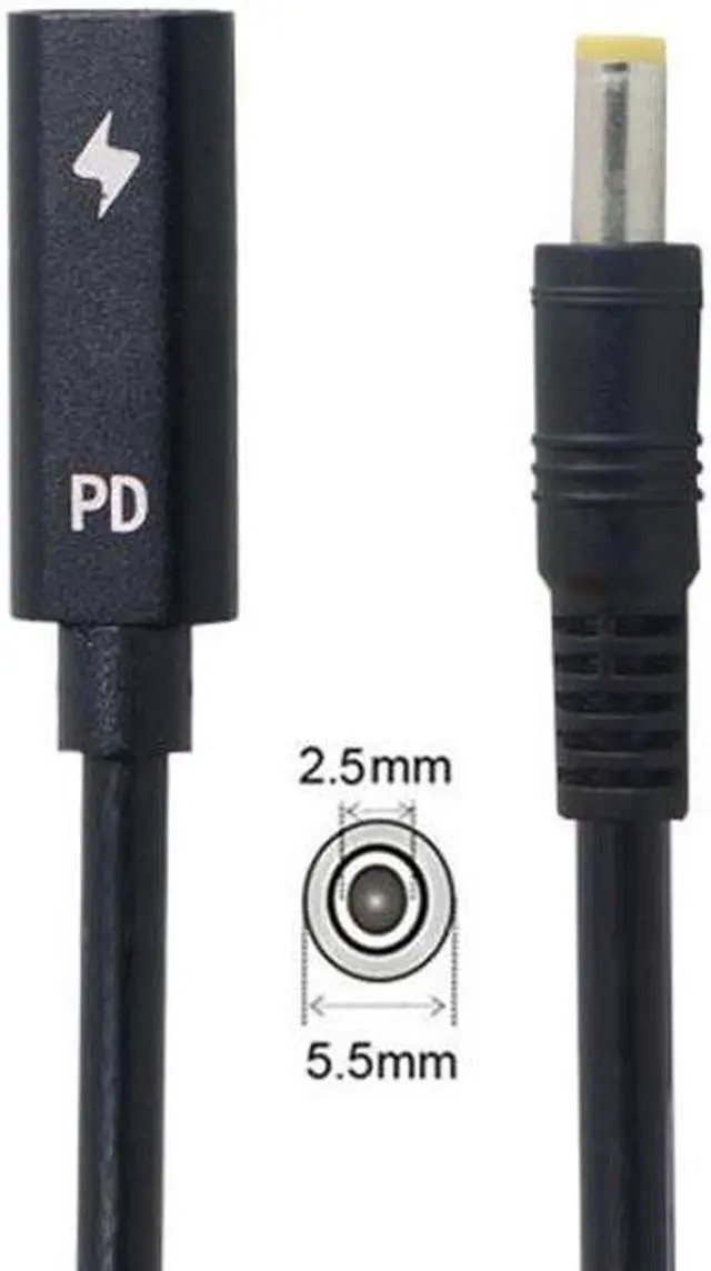 Aomoproing Type C USB-C Female Input to DC 5.5*2.5mm Power PD Charge Cable fit for Laptop 18-20V
