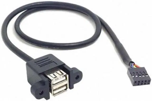50cm Dual USB 2.0 A Type Female to Motherboard 9 Pin Header Cable with Screw Panel Holes