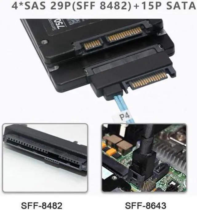 enables you to connect e. g. a controller with mini SAS 36pin connector (SFF 8087) to 4 SAS (SFF 8482) HDD.