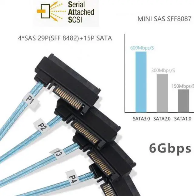 Internal 36 Pin Mini SAS SFF-8087 Host to 4 SFF-8482 Target SAS Hard Disk and SATA Power Cable