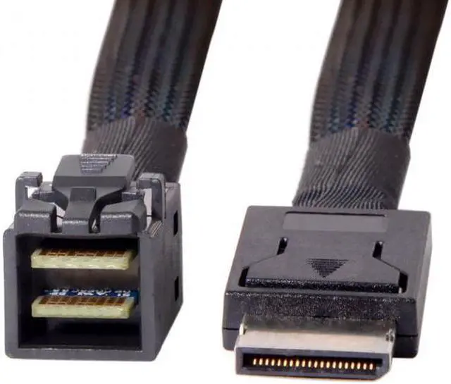 OCuLink SFF-8611 male to SFF-8643 male Lock to Mating Part: With Active Latch Data transfer rate up to 8 Gbps Cable length: 50cm System requirements: A free OCuLink interface The Cable can't work for SFF-8643 slimline SAS raid card.