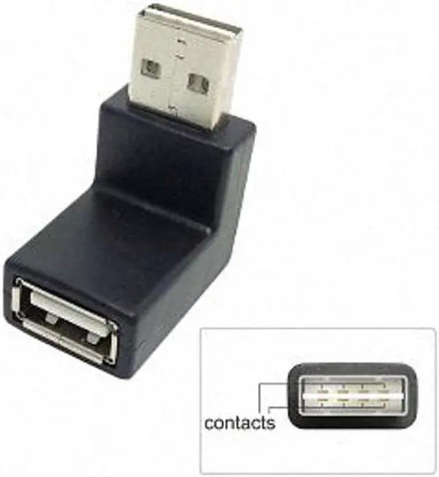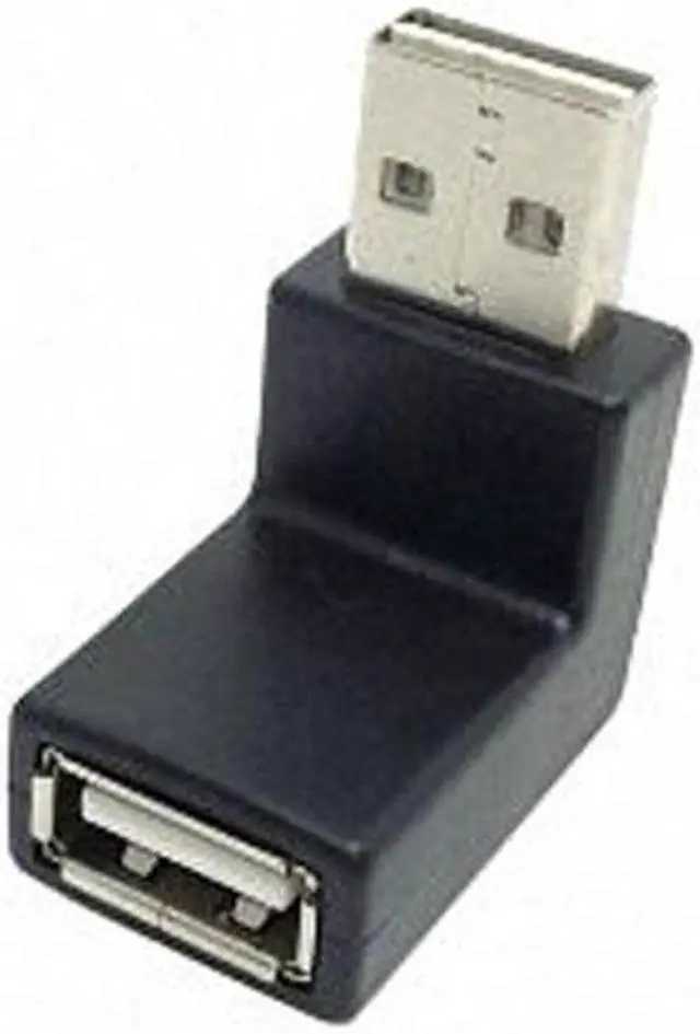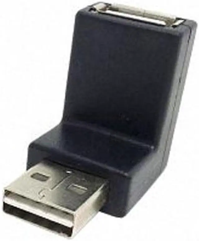USB-A male connector Reversible DesignUp Down Angled 90 Degree Specification • Connector: USB 2.0 type A reversible male Up Downangled > USB 2.0 type A female • USB-A male port usable in both directions • Colour: black