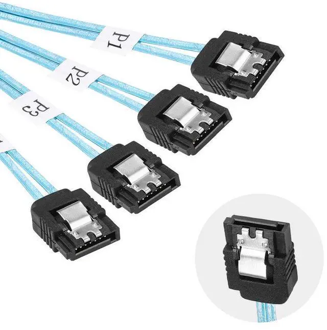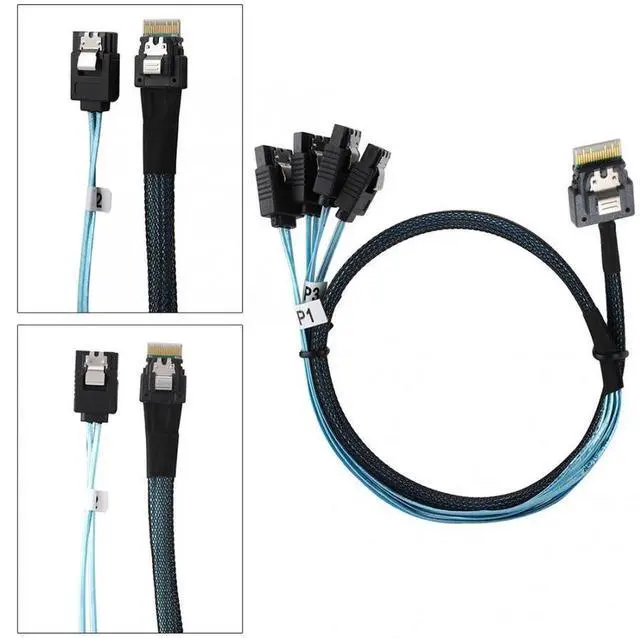 Aomoproing Slim Line SAS 4.0 SFF-8654 4i 38pin Host to 4 SATA 7pin Target Hard Disk Fanout Raid Cable 50cm