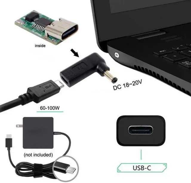 Aomoproing USB 3.1 Type C USB-C to DC 20V 5.5 2.1mm Adapter PD Emulator Trigger 90 Degree Angled
