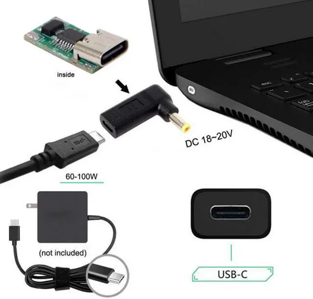 Aomoproing USB 3.1 Type C USB-C to DC 20V 5.5 2.5mm Adapter PD Emulator Trigger 90 Degree Angled
