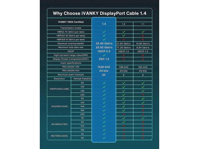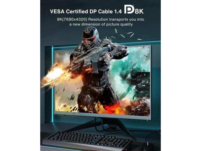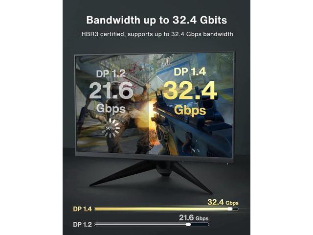 - 8K DisplayPort 1.4 Video Cable : Support for high-bandwidth HBR3, 32.4 Gbps bandwidth, DSC 1.2 display stream compression, FEC forward error correction, High Dynamic Range( HDR). Mirror or Extend Your Desktop