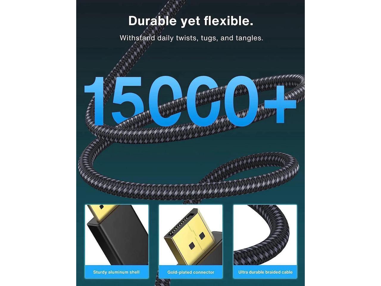 VESA Certified DisplayPort Cable 1.4, 8K DP Cable 10ft (8K@60Hz, 4K@144Hz, 2K@240Hz)HBR3 Support 32.4Gbps, HDR, HDCP 2.2, FreeSync G-Sync, Braided Display Port for Gaming Monitor, Graphics