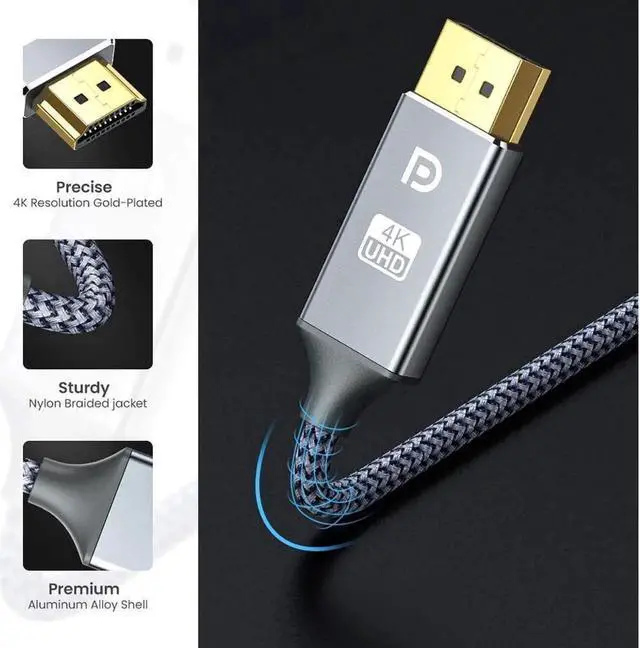 ![Alt view image 7 of 7 - 10ft/3M DisplayPort to HDMI Cable, [4K UHD] Uni-Directional Nylon Braided Gold-Plated DP to HDMI Cord Display Port to HDMI Male Connector -10 Feet](https://c1.neweggimages.com/productimage/nb640/C1M4S2509280DWYTJ78.jpg)