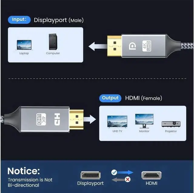 Displayport to HDMI Cable [4K UHD]