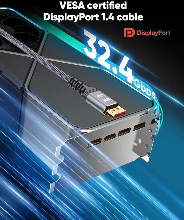 8K DisplayPort Cable 1.4, VESA Certified 8K 4K DP Cable 9.8ft, Display Port Cable [8K@60Hz, 4K@144Hz, 2K@240Hz, 32.4Gbps], High Refresh Rate for Gaming Monitor, HBR3, HDR, Graphics Card, PC