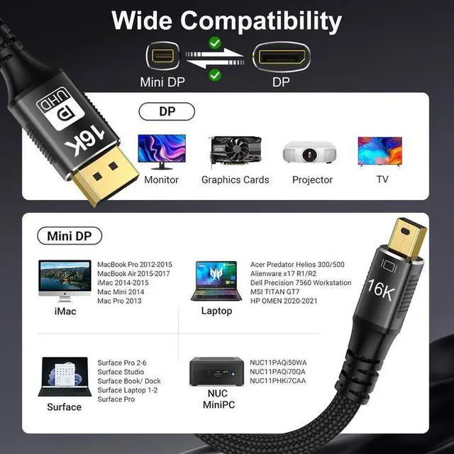 Mini DP to DP 1.4 Bidirectional Cable redefines display connectivity by offering true two-way signal transmission between Mini DisplayPort and standard DisplayPort devices. Whether you're connecting a modern graphics card to a high-refresh-rate monitor or linking a legacy MacBook to a cutting-edge 8K display, this cable delivers flawless performance.