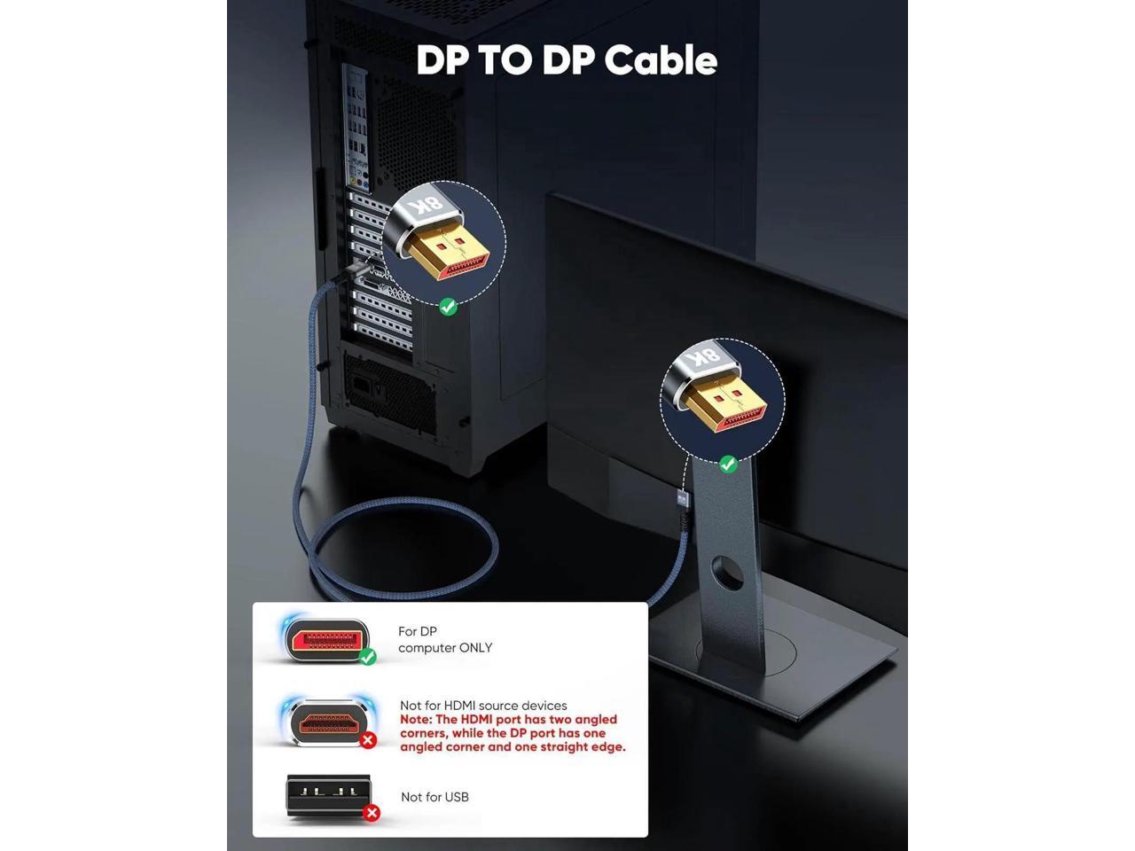8K DisplayPort to DisplayPort Cable, Computer Monitor Cable 3.3 ft, 8K@60Hz, 4K@120Hz, Display Cable, Male to Male Display Port Cable, Gold-Plated DP to DP Cable
