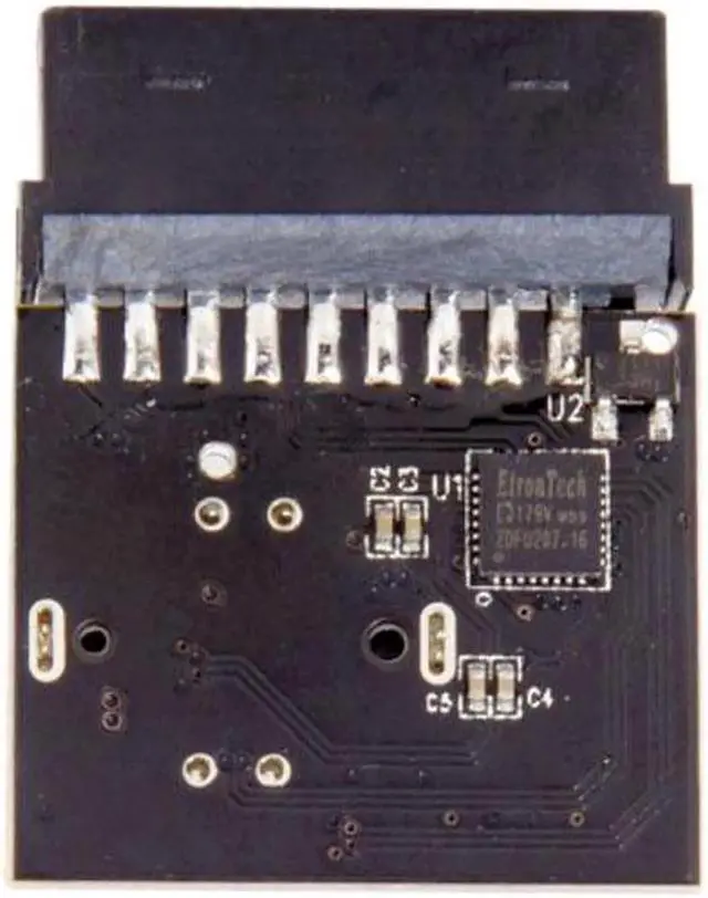 • The small converter is plugged into a USB 3.0 header that provides two USB 3.0 lanes.