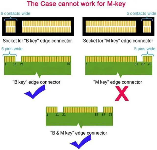 2. The adapter only work for B-key or B/M-key socket NGFF SSD, cannot work for M-key socket.
