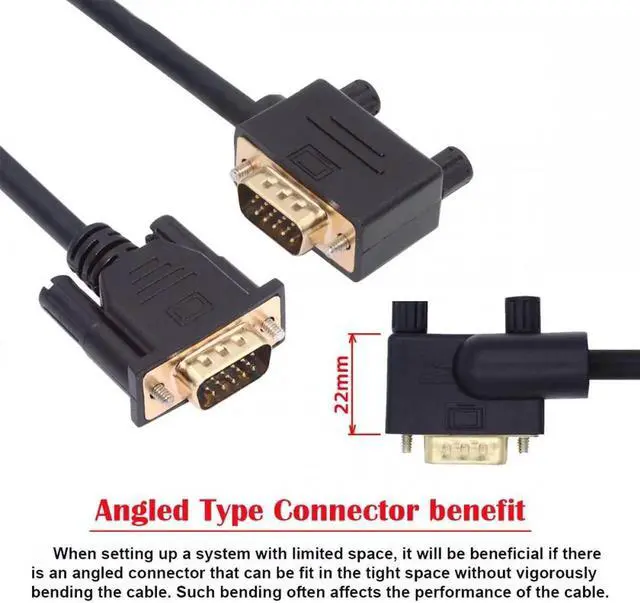 90 Degree Angled VGA RGB Male to Straight Male Extension Cable 3COAX+6C for Monitor Projector Computer