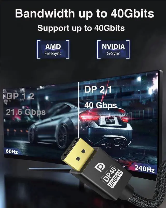 DISPLAYPORT 2.1 CABLE , DP 2.0 CABLE [8K@60HZ, 4K@144HZ, 2K@240HZ] 40GBPS HDR, DSC 1.2A
