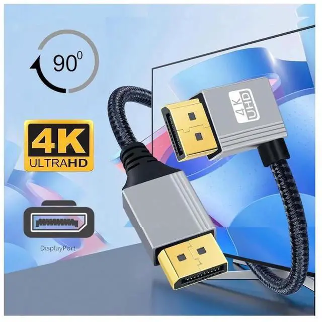 Angled DisplayPort DP to DP Cable 4K 60hz Cable Silver Sleeve Ultra-HD UHD 90 Degree for Desktop Laptop Monitor Graphics Card