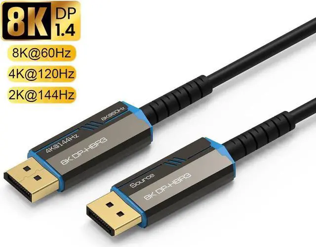 This is an 8K Fiber Optic Displayport 1.4 Cable, supporting 8K@60Hz, 4K@144Hz HD displays. Our Fiber Optic Displayport 1.4 Cable is made of fibre optic material which is more resistant to electromagnetic interference than ordinary copper wire and provides a stronger and longer lasting signal transmission, without the need for a signal booster. No loss of clarity or smoothness.