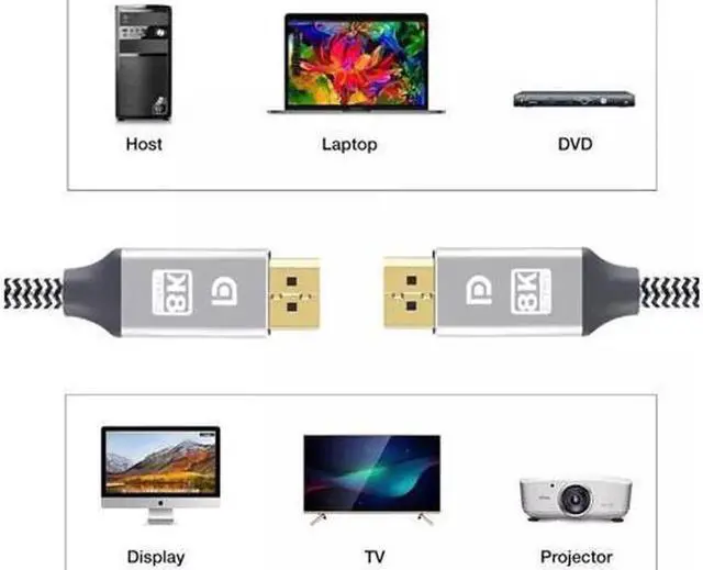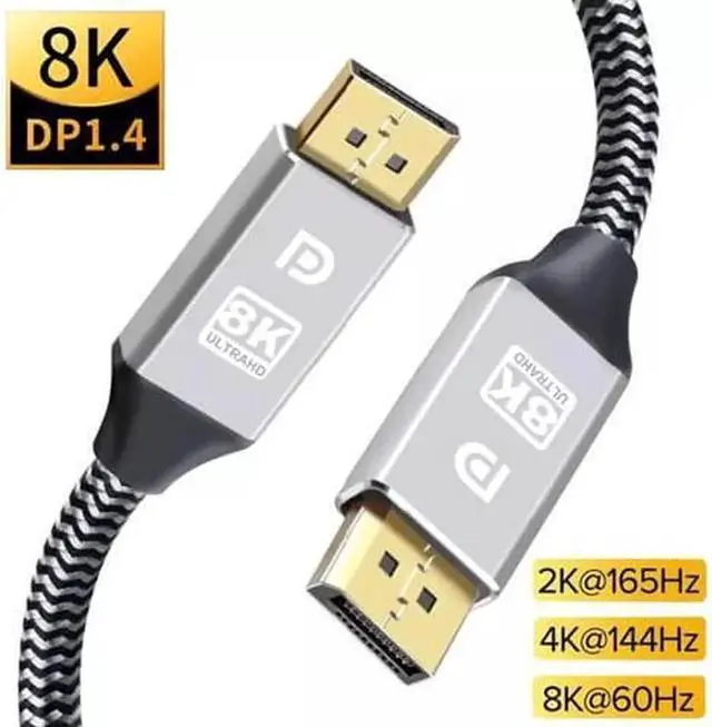 The DisplayPort to DisplayPort male to male cable provides a cost-effective and easy solution for connecting a computer, desktop, laptop, or other devices with DisplayPort to a Display Port display such as monitor, projector or TV,which is your preferred choice for seamless gaming, video streaming or extending a workstation.The combination of gold-plated connectors, bare copper conductors, and Nylon Braided [2K@165Hz, 2K@144Hz, 4K@60Hz, 8K@60Hz] provides superior cable performance, exceptional picture quality, and authentic audio.