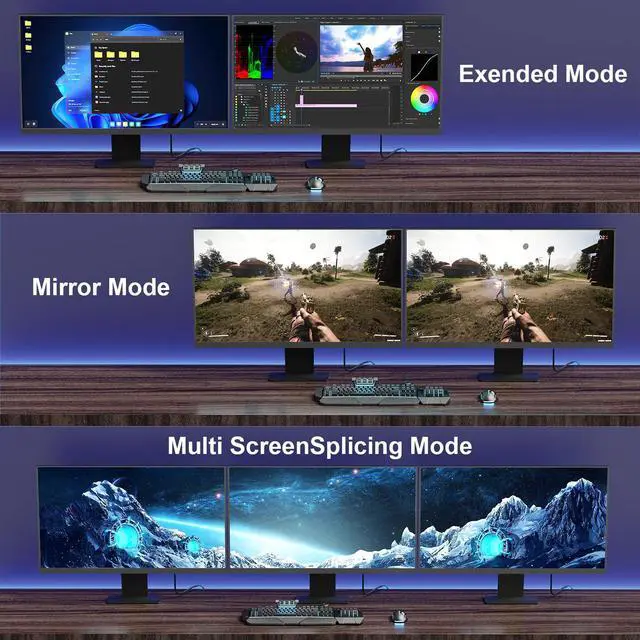 Dream Choice: surpassing the boundaries of traditional 4K/8K, it opens up an unprecedented ultra-high-definition visual realm for you, HDR technology deeply optimizes dark scenes and details, bringing every frame to life with vibrant colors, sharp contrasts, and a game world that feels within reach, furthermore, supporting Multi-Stream Transport (MST) technology, it effortlessly enables multi-display setups, expanding your gaming battlefield and delivering a fully immersive gaming experience