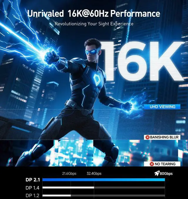 DisplayPort Compatibility: DisplayPort 2.1 cables are compatible with older DP devices and ports / Backward compatible with DisplayPort 2.0, 1.4, and 1.2