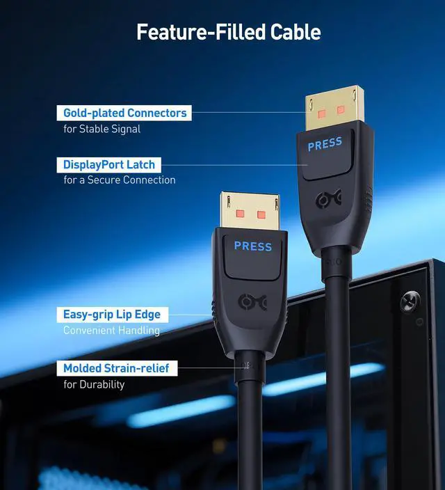 Advanced DisplayPort Features: This DisplayPort 2.1 cable supports features including G-Sync and FreeSync for tear-free gaming / Enjoy ultra high resolution video for the ultimate gaming experience