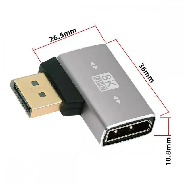 Angled DisplayPort 1.4 Male to DP Female 8K 60hz Adapter Ultra-HD UHD 4K 144hz 90 Degree for Video PC Laptop Monitor