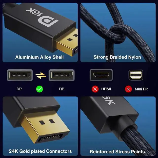 - [Customer Support]You'll get 1 pack 16K DP Cable 3.3ft, along with our friendly support team ready to help within 24 hours; Each cable undergoes meticulous testing to ensure it meets the highest quality standards; We also provide expert technical support to all our customers; Additionally, you can enjoy conditional customer support for up to 54 months