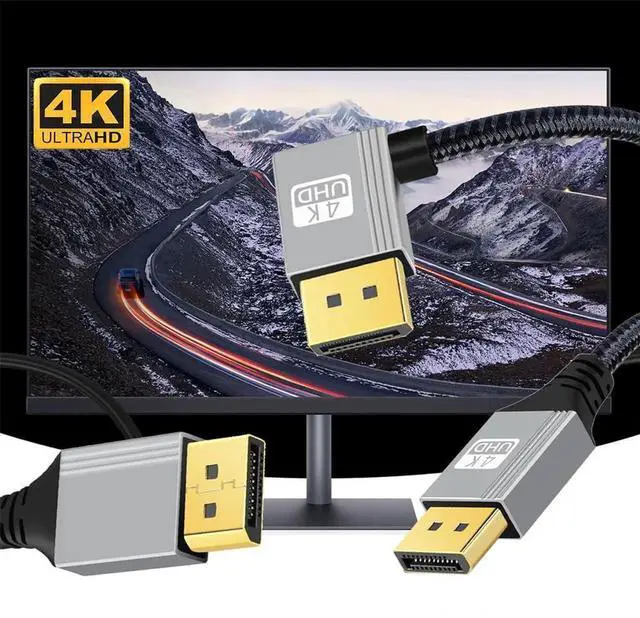 Left Angled DisplayPort DP to DP Cable 4K 60hz Cable Silver Sleeve Ultra-HD UHD 90 Degree for Desktop Laptop Monitor Graphics Card