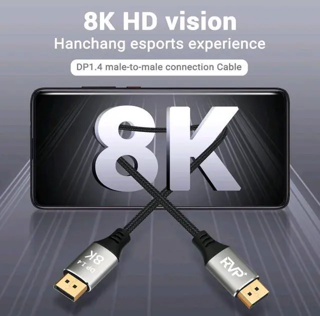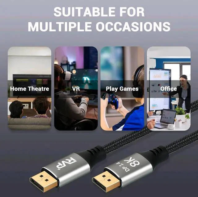 Standard Edition 8K 60H Z 4K@144HZ DisplayPort 1.4 to DisplayPort Cable connects your AMD, or NVIDIA video Graphics card, Laptop to a G Sync 165Hz, 144Hz,240Hz monitor for video streaming or gaming; Connect your monitor for an Extended Desktop or Mirrored Displays