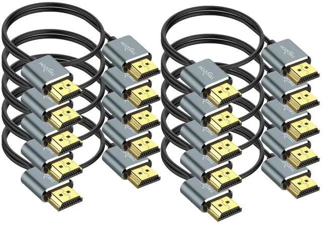 High Speed: Slim HDMI Cord 1FT 4K@60Hz HDMI Cable support resolution up to 3840 x 2160 3D HDR and 32 audio path and 18Gbps band with high level of EMI resistance providing vivid visual experience.
