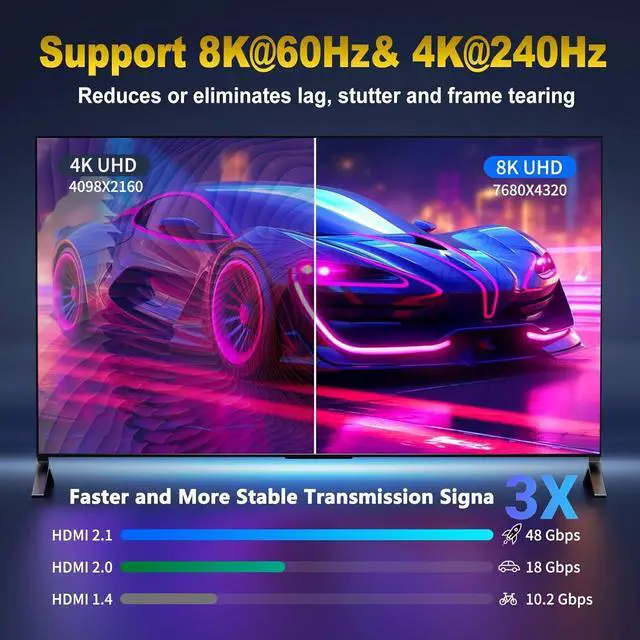 Revolution-HDMI 2.1 ]: Green Jiss 8k hdmi 2.1 cable is complies with the HDMI 2.1 standard and is the highest version currently in the world. Compared with the previous version hdmi 2.0 its transmission speed has made a qualitative leap directly from 18Gbps to 48Gbps. What's more The HDMI 2.1 cable contains and upgrades all the functions of the previous HDMI version and is fully compatible with HDMI 2.0 b/ 2.0 a/ 2.0 / 1.4 / 1.3 / 1.2 / 1.1 version.?? [ Real 8K@60HZ