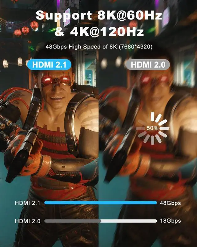 Compared with HDMI 2.0 its transmission speed has a qualitative leap from 18Gbps to 48Gbps (6GB/s) directly its transmission speed is three times more content than Ultra HD 4K and there will no longer be stuck or dropped frames when watching video from now on[High-end material-High quality & Durable] - The cable core is made of 30AWG tinned copper. The interface is made of 24K gold-plated stable transmission and will not oxidize. Super strong frequency blocking effect excellent high-frequency transmission. The ultra high speed hdmi cable 2.1 is made with braided and high-strength cotton mesh to wrap the interior PVC tightly.
