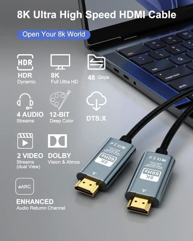 [Real 8K@60HZ HDMI Cable] - This 8K HDMI Cable uses the most cutting-edge technology is compatible with 8K@60HZ and 4K@120HZ clearly displays every particle and accurately processes every signal source. With 8K HDMI's unique dynamic HDR and 12 Bit color processing technology and 48Gbps bandwidth it can provide the Ultra High Definition cinematic experience and 3D visual effects with more ideal depth brightness detail contrast and wider color gamut[UHD HDMI 2.1 Cable] - DAGUAIKA Real 8K HDMI Cable meets the standard HDMI 2.1 Version and is also backward compatible with HDMI 2.0 b/ 2.0 a/ 1.4 / 1.3 / 1.2 / 1.1 versions.