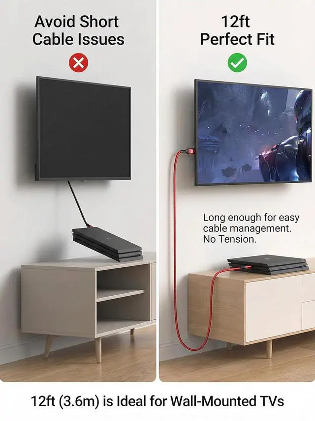 & Reliable Design**: Constructed with 28AWG tinned copper and triple shielding our 12ft HDMI cable is designed for durability. The unique non-locking buckle design prevents damage to your devices during disconnection ensuring a long-lasting connection for all your entertainment needs.?
