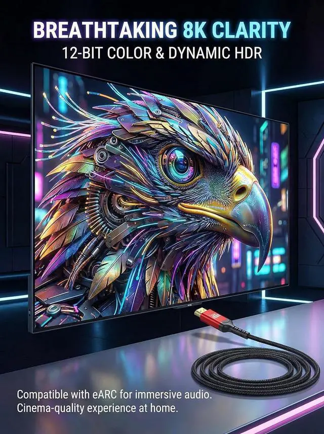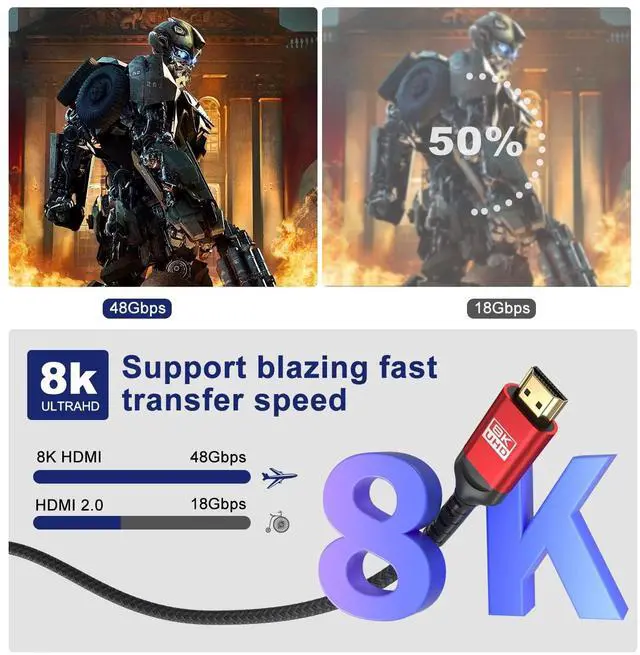 Definition Support**: Experience the future of home entertainment with our 8K HDMI cable that supports resolutions up to 7680x4320. Enjoy 8K @ 120Hz and 4K @ 120Hz for stunning clarity and flawless motion on compatible displays perfect for movie enthusiasts and gamers alike.?