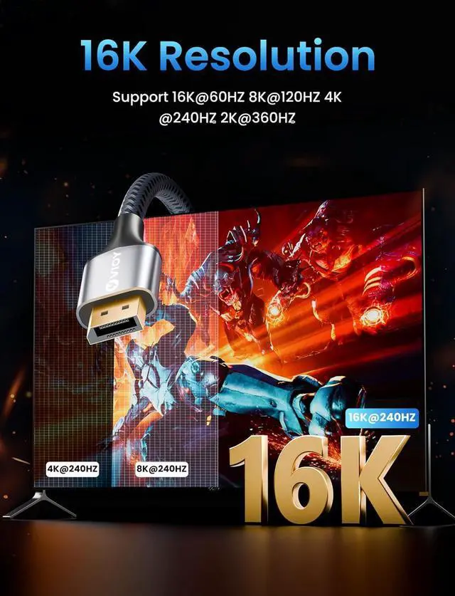 Gaming Lovers: This 16K DisplayPort cable is the ultimate choice for gaming enthusiasts not only enhancing dark scenes and detail rendering but also accurately reproducing enemy footsteps and breathing sounds. It also supports MTS multi-screen daisy chain transmission technology delivering an immersive multi-screen gaming experienceImportant